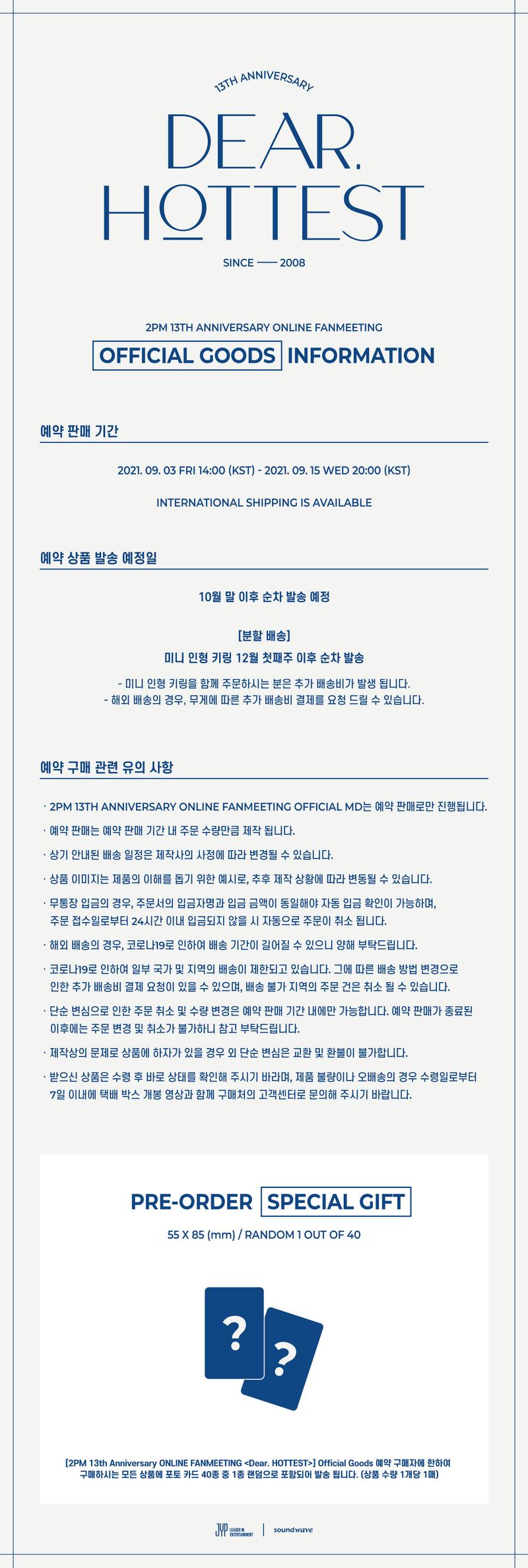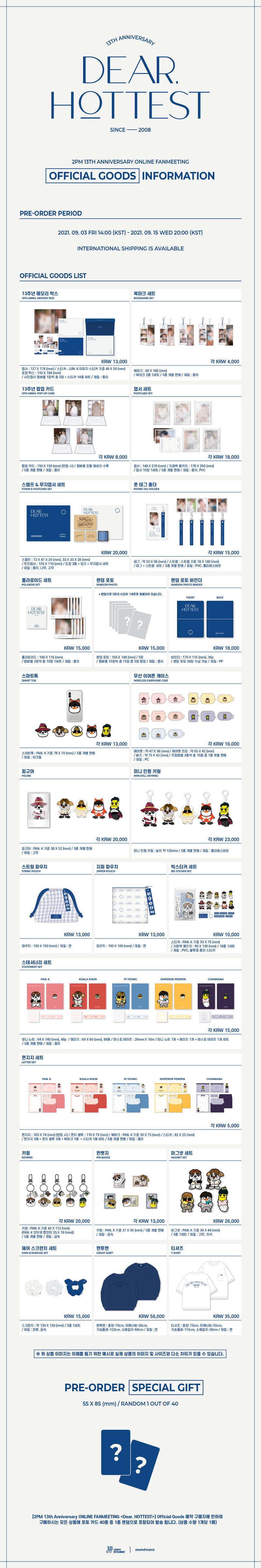 2PM 13th ANNIVERSARY ONLINE FANMEETING <Dear. HOTTEST> OFFICIAL GOODS INFORMATION