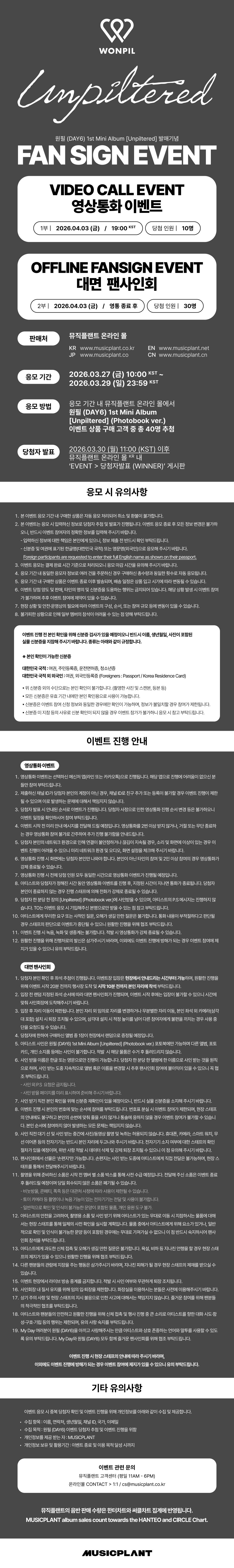 2026년 4월 2일 목요일, 원필 <Unpiltered> 발매 기념 대면 / VIDEO CALL EVENT 안내입니다.