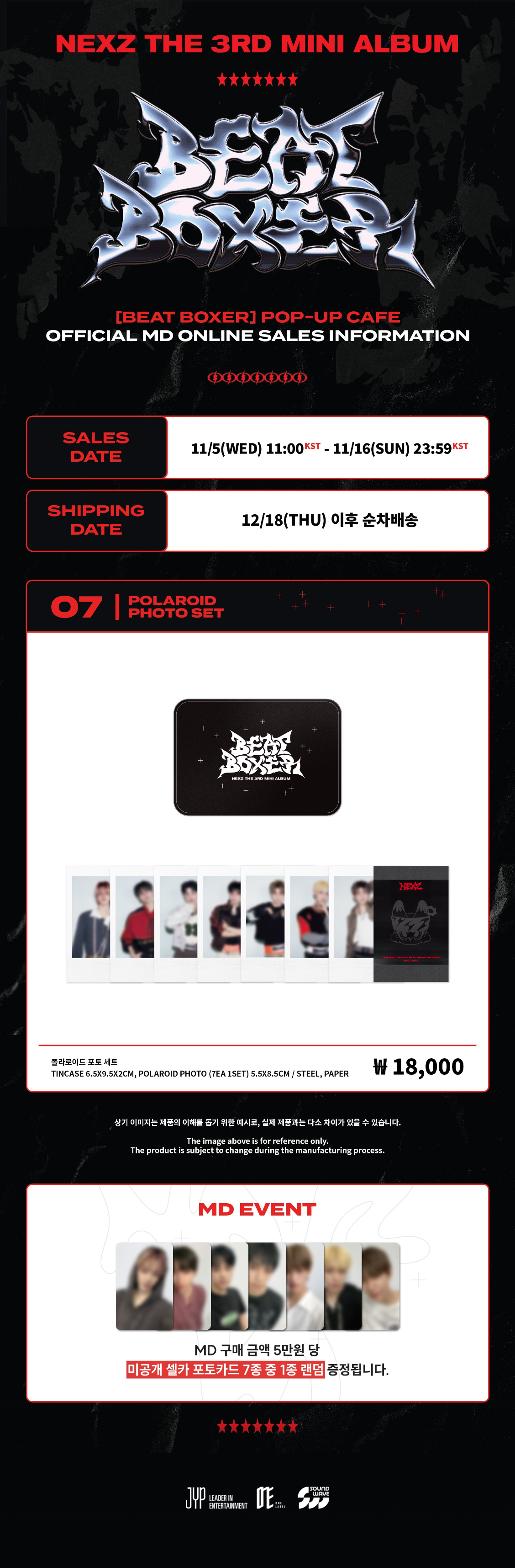 - Due to the nature of printed materials (such as photo cards), slight contamination, scratches, bends, or folds may occur during production.